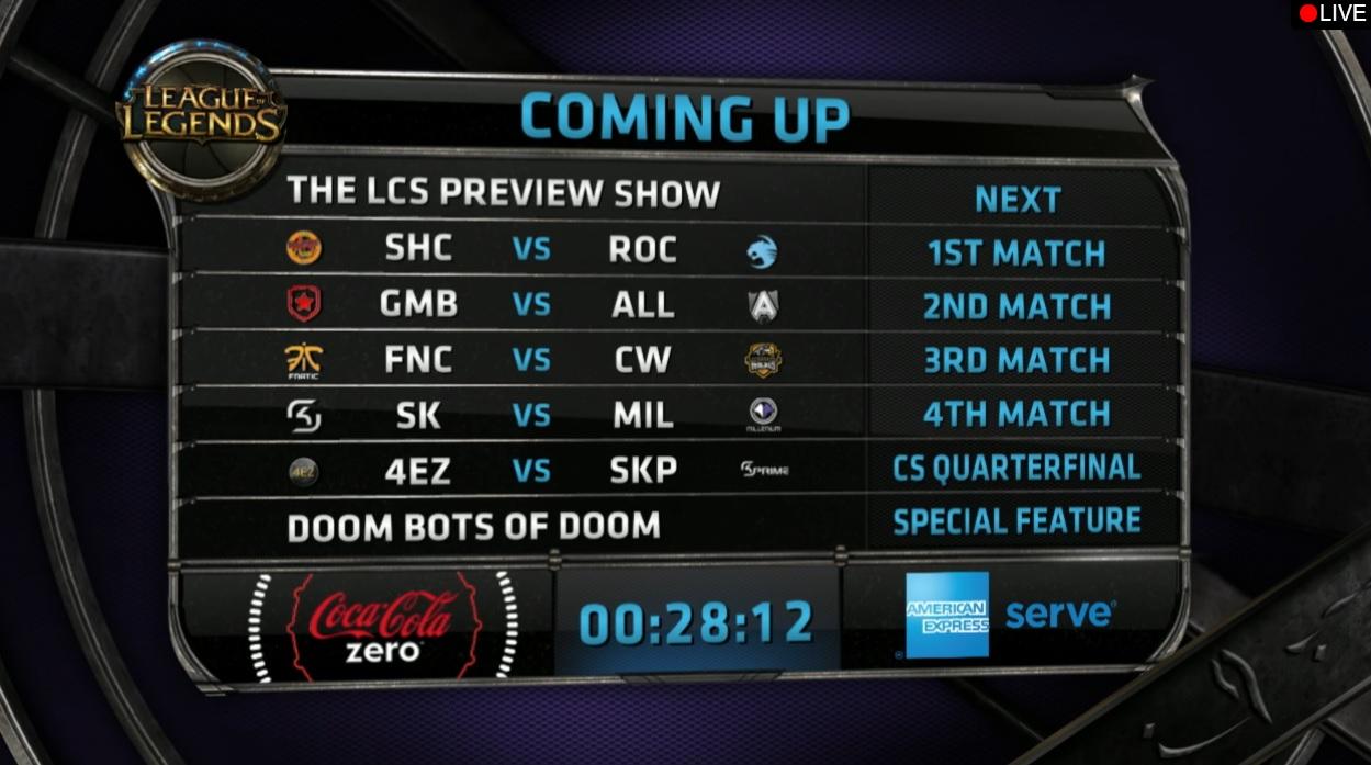 As always, feel free to check LoLesports.com for more information and advanced scheduling!