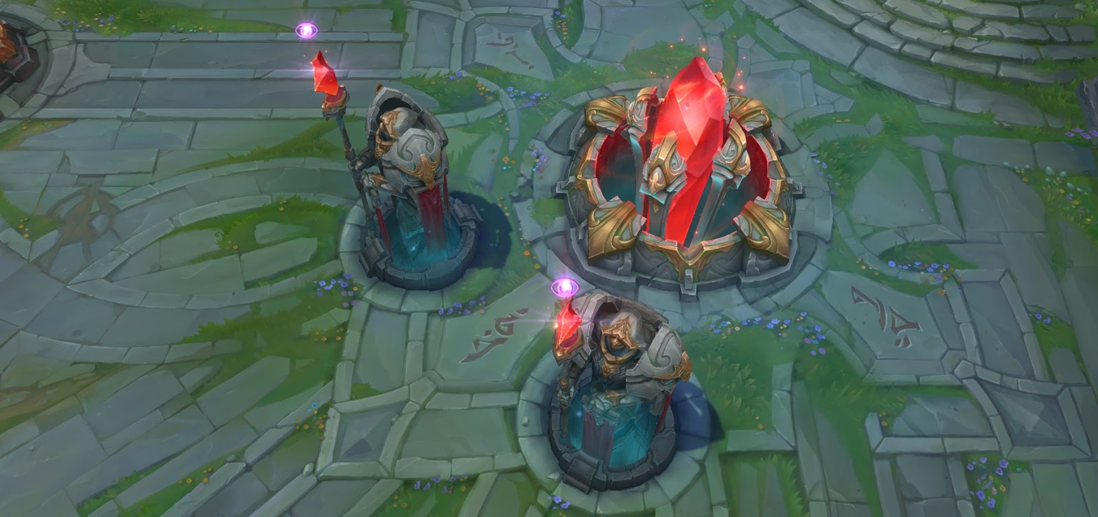 Oh, here's a good one. Considering everyone calls the respawn point "the fountain" did you try at some point to incorporate actual fountain designs into it? If so, why were these plans changed/dropped? If not, why not?Great question. We considered many angles while designing the bases. The big challenge with designing around the name used in NA is that we have many regions to consider. For instance, in China the inhibitors are called "crystals." Therefore we decided to focus on creating thematically cohesive structures. That way we create something that really feels like a place in Runeterra.