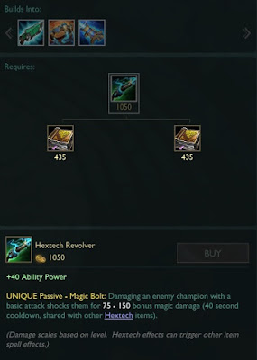 - Recipe: Hextech Revolver + Kindlegem + 700 gold