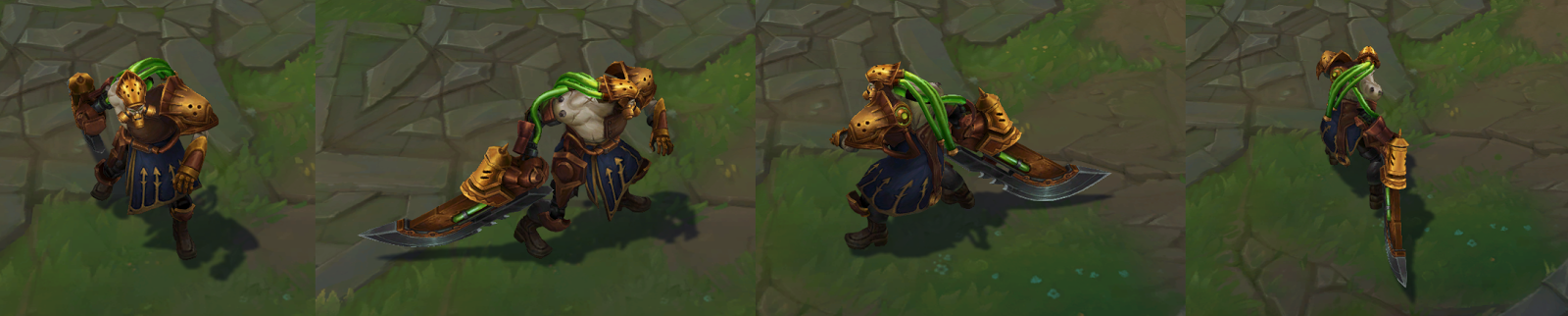 - All-new model and textures (Zaunite armor and tech surges the power of chemtech through him.)