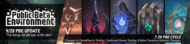 The PBE has been updated! As we continue the 7.20 PBE cycle, today's patch includes continued Runes testing, changes to the gameflow in testing, and more tentative balance changes.